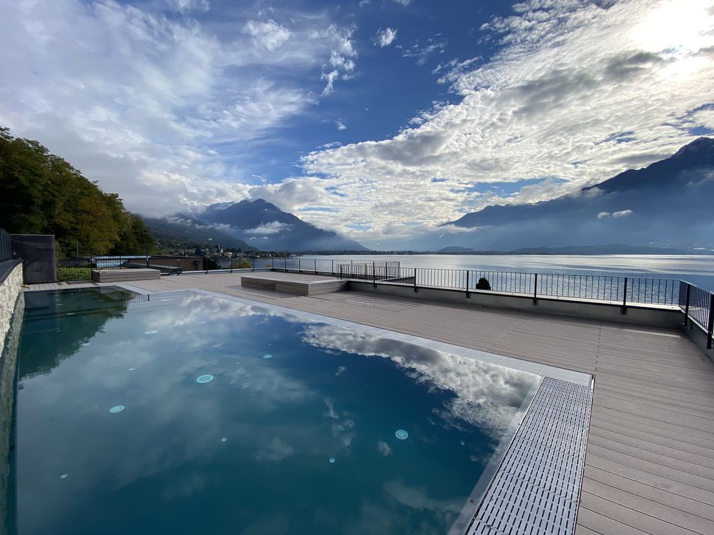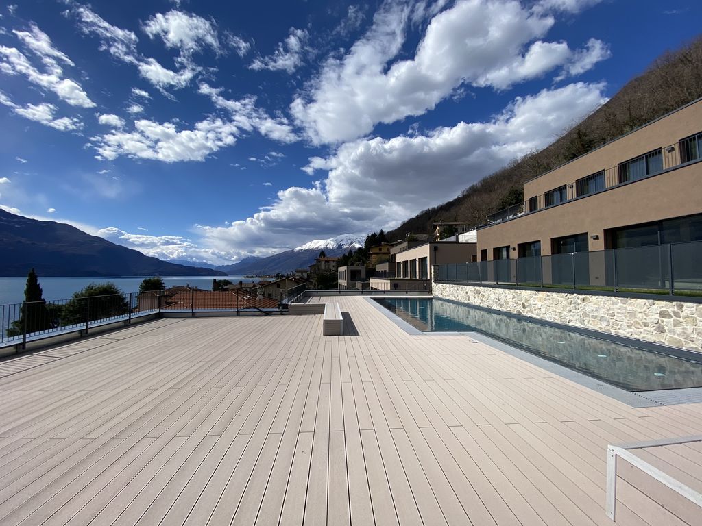 Just 50 meters from the lake, in a very sunny position with beautiful lake views, stands the prestigious residence “Il Giardino Pensile”. A modern design complex with elevators and a large swimming pool with solarium, consisting of 6 independent villas divided into a total of 20 exclusive units, all with large private roof gardens and/or terraces.