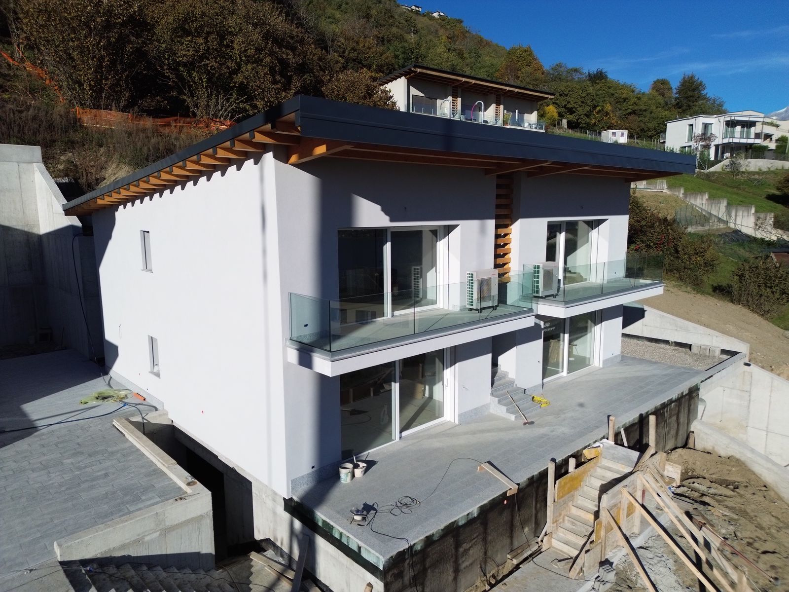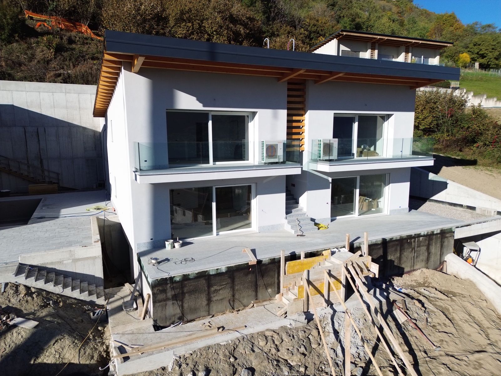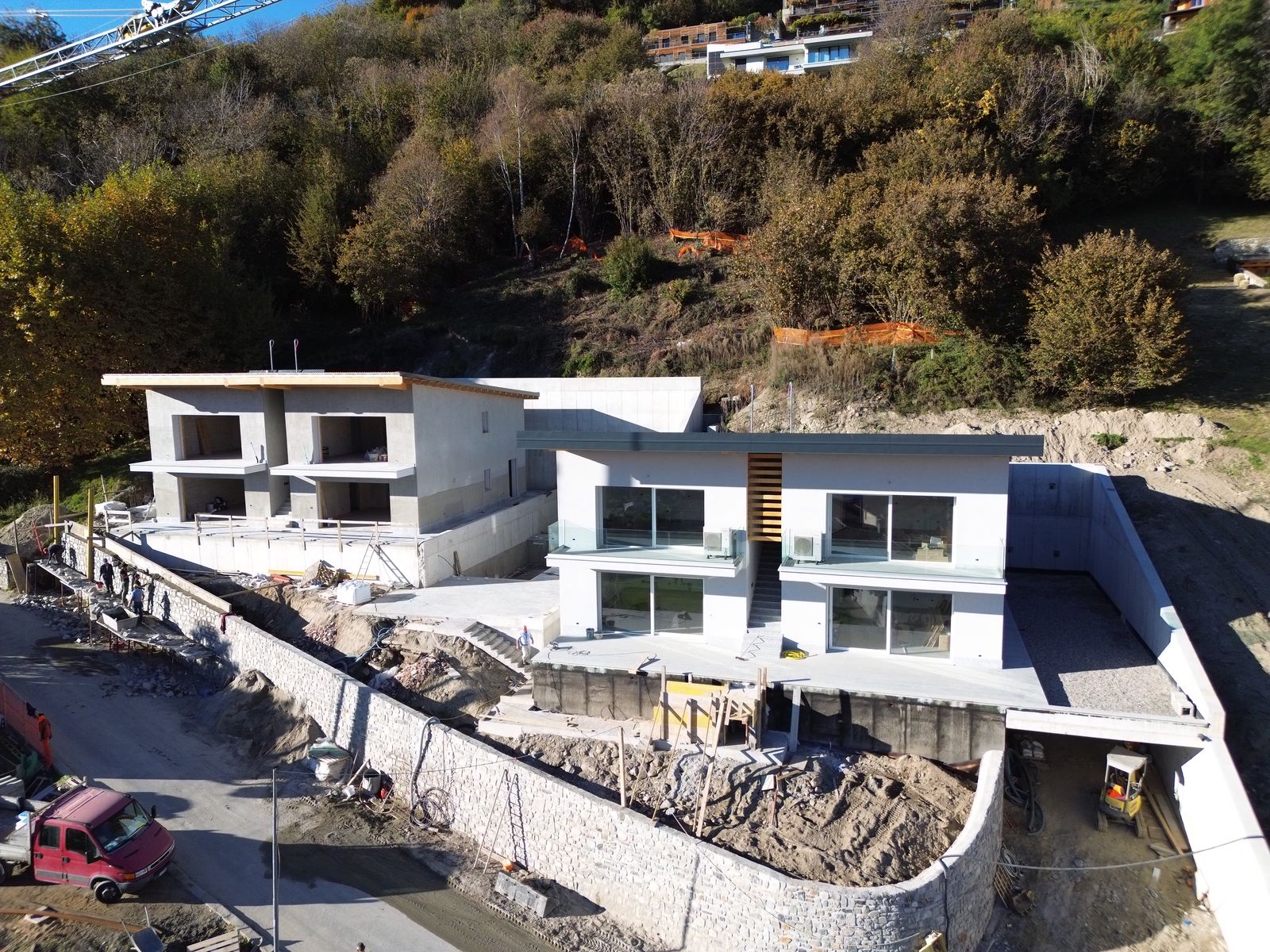 Luxurious residence of modern design consisting of eight elegant flats divided into two adjacent villas with a beautiful communal swimming pool with a large solarium overlooking the lake, each designed to offer a mix of comfort and modern living.