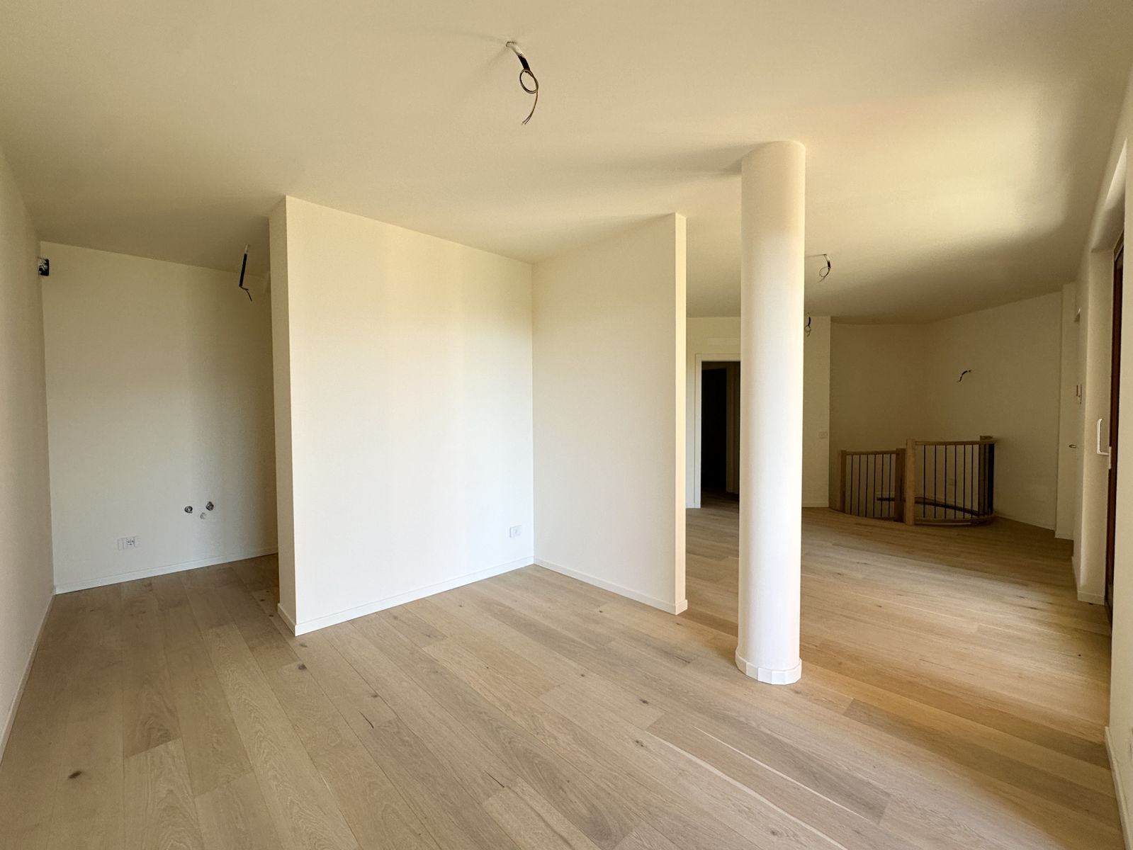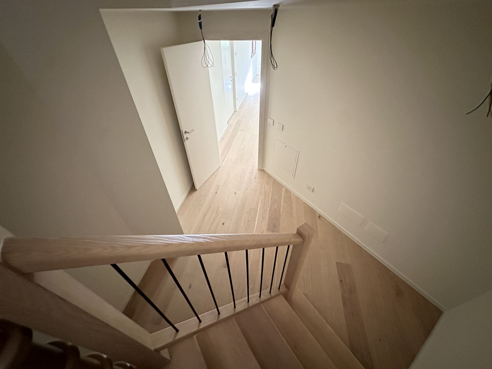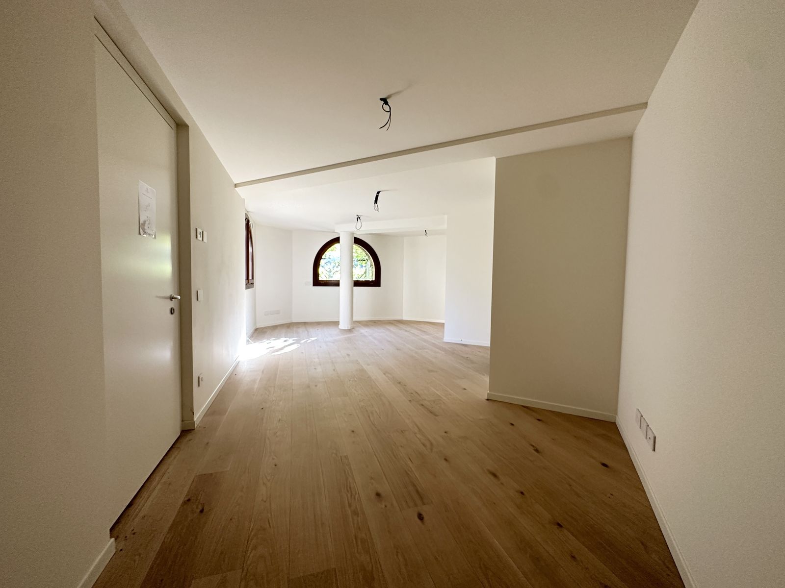 From a spacious wooden staircase located in the corner of the living room we go down to the floor below, which is not habitable and is very bright and has two large windows, as well as a second entrance, where we find the large tavern (third bedroom) and the third bathroom. Price of the apartment € 530,000.00+VAT 10%.